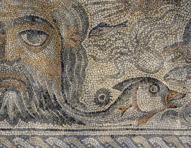 The merchant residence was one storey, the pavement is in white marble with mosaics with polychrome limestone tiles in the ‘atrium’, living rooms and bedrooms. The precious opus musivum , mosaic ‘carpets’, is made of tiles in Lunensis marble, the marble from Luna colony and its quarries in the Apuan Alps, birthplace of the renowned Carrara marble. The residence had a scenographic porticus facing the sea.