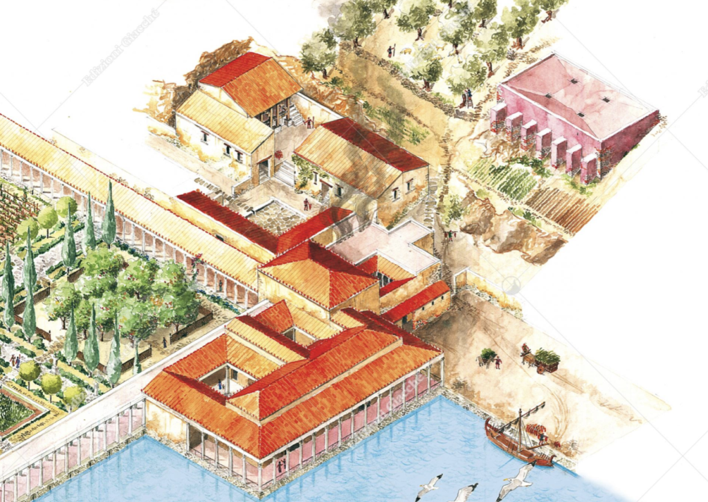 It enjoyed a unique position at the end of a protected inlet, surrounded by 30 hectares of fundus, a terrain cultivated with olive trees. It was part of a system of docks and farmlands created by the Romans in the gulf of La Spezia or Poets Gulf, revolving around the important colony of Luna (Luni in Italian), at today’s border between Liguria and Tuscany.