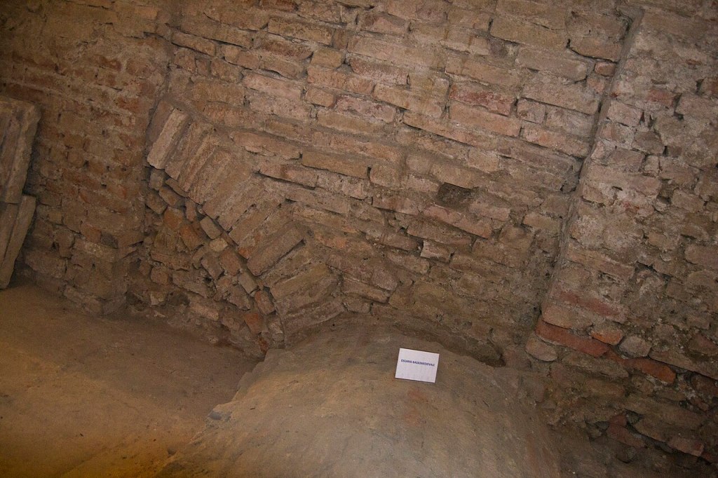 Through a tiny passage underground you can see traces of the foundation plateaus of a public building dating back to the end of the first century AD.