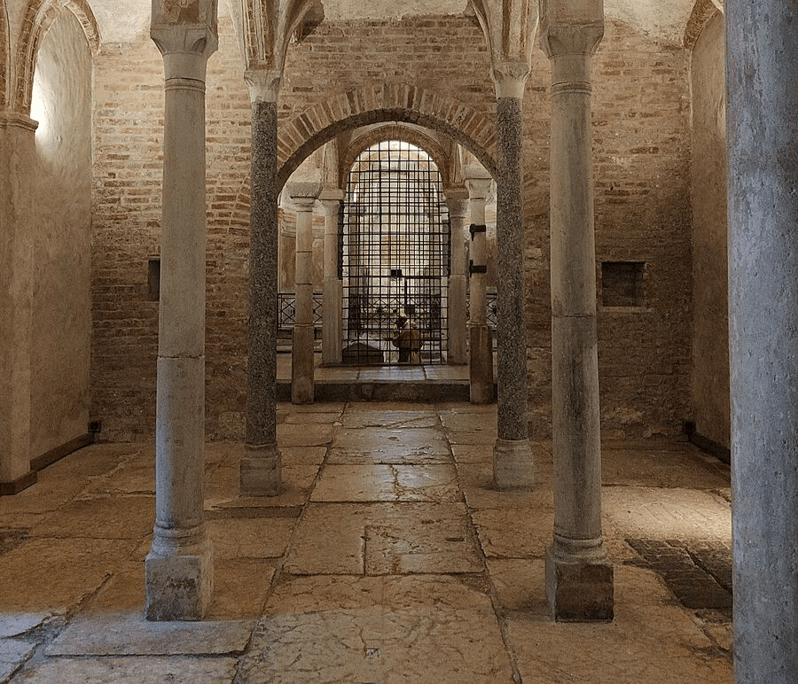 The chapel of Sant’Aquilino could have been an imperial mausoleum. It contains a monumental sarcophagus in Proconnesian marble, known as that of Galla Placidia, the Byzantine princess who died in 415 AD. In reality the sarcophagus dates back to the 3rd century AD and was reworked in the VI century to accommodate a new Christian recipient.