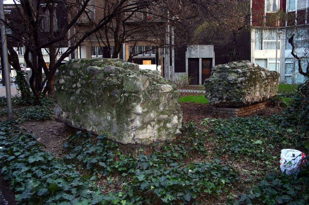 On Porta Nuova, a 12th century medieval gate in northern Milan, you can find two ancient Roman steles, stone relief sculptures. One of them represents members of the family of cloth merchant Caio Vettio. Roman walls A Roman itinerary may start in via San Giovanni sul Muro, not far from Cairoli metro station (red line), where ancient walls near Porta Vercellina (49 a.C.). are still visible.