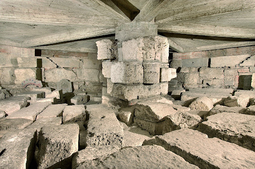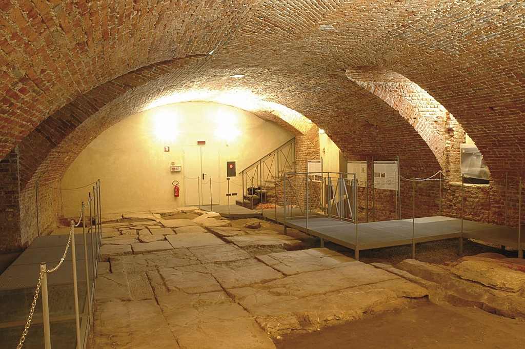 Underneath the Biblioteca Ambrosiana, the Ambrosiana Library it is possible to see part of the pavement of the original Forum, the heart of Mediolanum that hosted the most important administrative and religious activities. It is made of large rectangular slabs of red Verona marble with irregular sizes because they still have the original shape, which once accompanied the profile of the buildings adjacent to them. Other fragments of the flooring are in the crypt underneath the church of San Sepolcro accessible from the backyard of the Library.