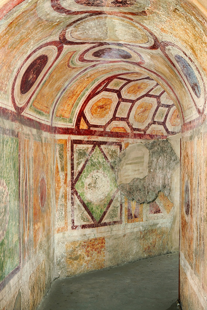 Remains of the sumptuous Imperial Mausoleum of the Valentiniani family can be seen in the Church of San Vittore in Corpo, in Via San Vittore. The octagonal enclosure, internally 132 meters long and 100 meters wide, had sides 42/44 meters long and was equipped with semicircular towers at the top. The northwestern section of the wall, the only one preserved above ground, had niches flanked by semi-columns. The monumental entrance was located to the south-east and flanked by two towers.