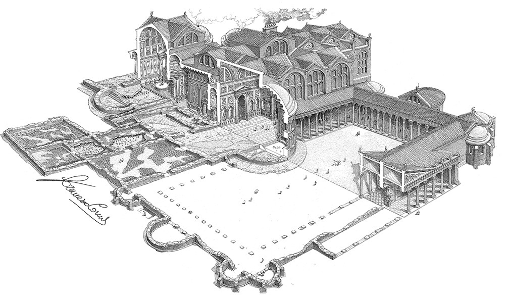 The palatium, built in 287 AD, was the residence of the Emperor and his court and occupied the area between today Corso Magenta, Via Santa Maria alla Porta, Via Torino and Via Circo.