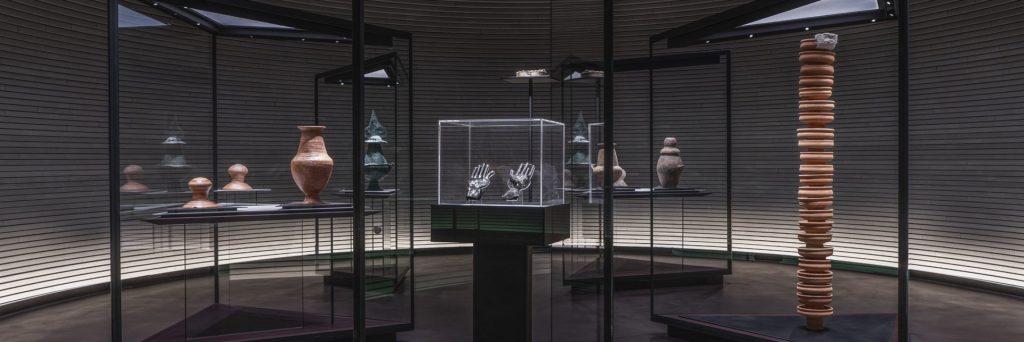 The Museum houses a rich collection of Etruscan ceramic, bronze and gold objects. The exhibition route unfolds from the wonderful Hypogeum floor (Level -1) to the Piano Nobile (Level 1), in a journey that takes visitors from past to present – with over 200 artefacts of the museum’s Etruscan collection exhibited alongside modern and contemporary artworks.