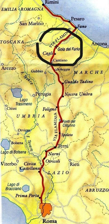 THE VIA FLAMINIA – The road derives its name from Gaius Flaminius: around 220 BC he promoted the construction of a road that connected Rome to the Adriatic Sea at Fanum Fortunae (Fano, SEE OUR GEMS section) and then to Ariminum (Rimini).