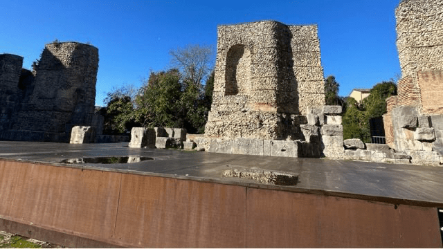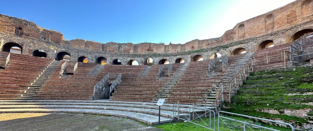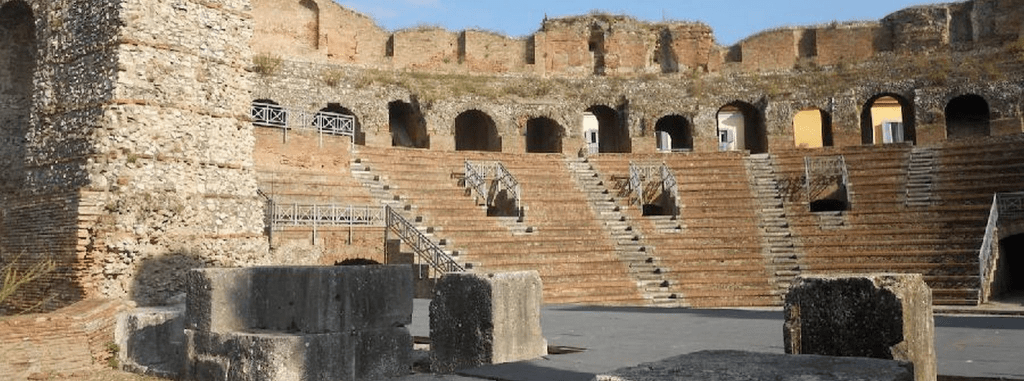 The remains of the Roman amphitheatre were discovered in 1985 between via Munazio Planco and the Leproso bridge. Historical sources suggest that it existed in the year 63 AD, because Nero attended a gladiatorial show in the city.