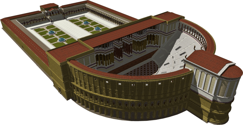The sacred function of the temple made the theatre legitimate. Soon afterwards the stage arose that would entertain 20,000 spectators. A large portico at the back of the stage was finally built as a Curia for Senate meetings. This is the famous “Curia Pompeia” where on March 15, 44 BC, Julius Caesar was killed. Much blood bathed that statue (of Pompey) so much so that it seemed that Pompey was avenging his enemy”, wrote Plutarch.