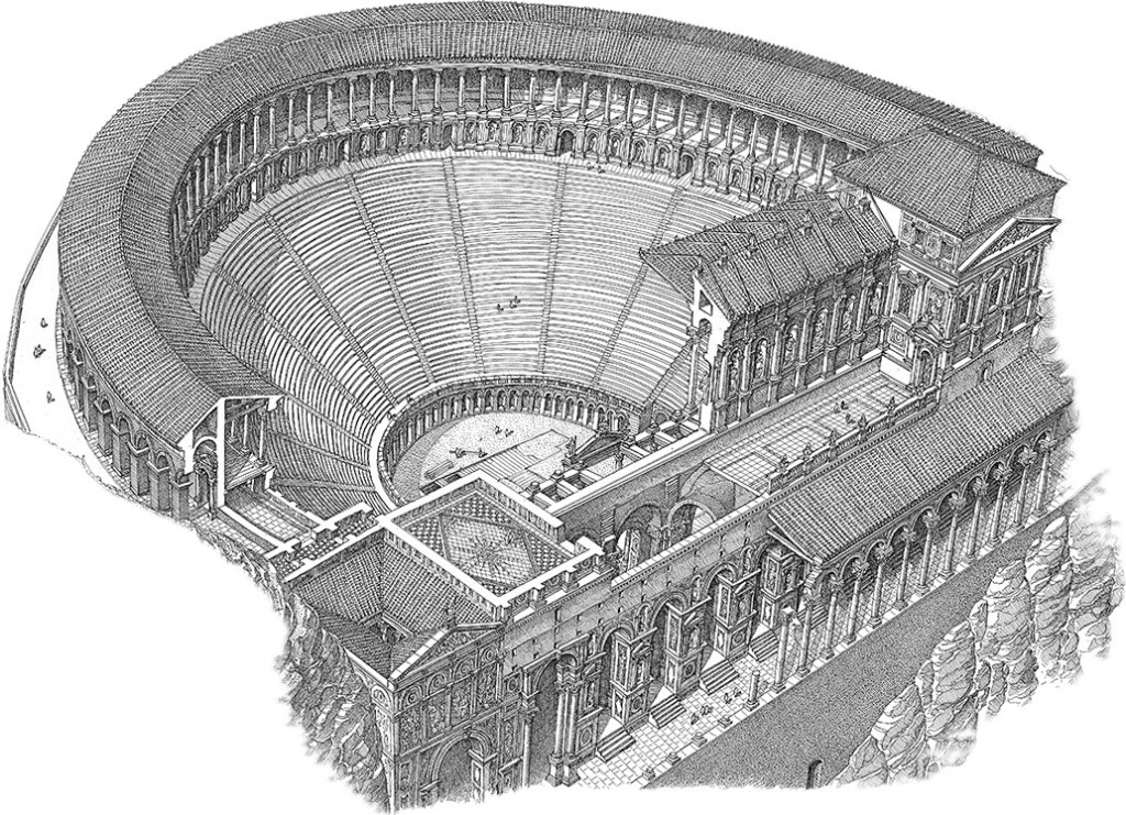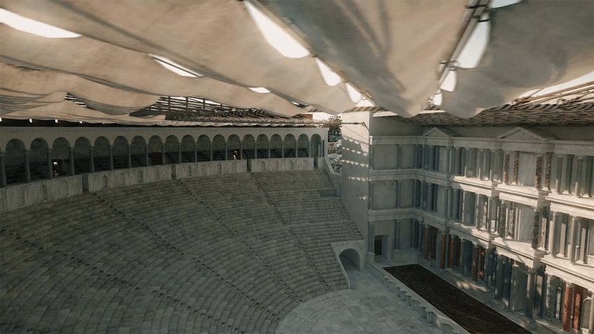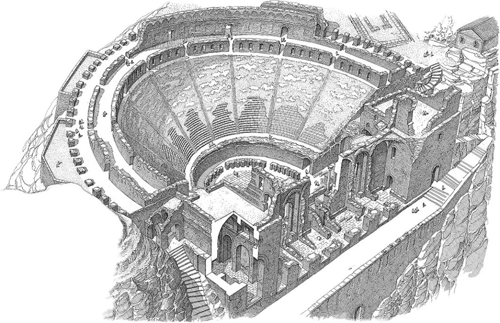 The theatre was later transformed by Romans under Trajan or Hadrian. The first intervention dates back to the first quarter of the 2nd century AD when its capacity was enlarged with the construction of an external ambulatory and the reconstruction of the entire scaenae frons. The second in 3rd century involved changes to the stage and the expansion of the orchestra to turn the theatre into an arena that could host gladiatorial games.