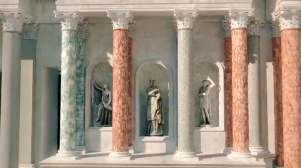 Behind the wall of the upper closure of the cavea, to increase the number of places, two large porches were built. The vaults of the arcades supported a terrace each. The first porch supported the lower terrace, divided into several rows of wooden seats reserved for women, while the arc of the second porch, on the highest terrace of the theatre, was without fixed seats and hosted the humble people.