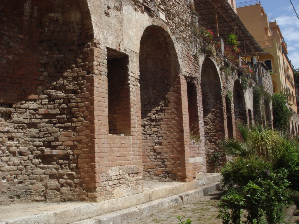 THE THERMAE – The thermal complex discovered on the north side of Piazza Vittorio Emanuele, in the courtyard behind the Carabinieri Barracks of Taormina, extended north under the so-called “Zecca” district where you can still see remains of brick walls and arches incorporated into 18th century houses.
