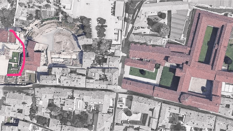 Between the 11th and 12th centuries, the stage collapsed, probably due to an earthquake, and the building became an open-air quarry. In the 12th century documents tell us this space was used as a place for public hearings, but its state of abandon and the crumbling of the hill led to its progressive and definitive burial.