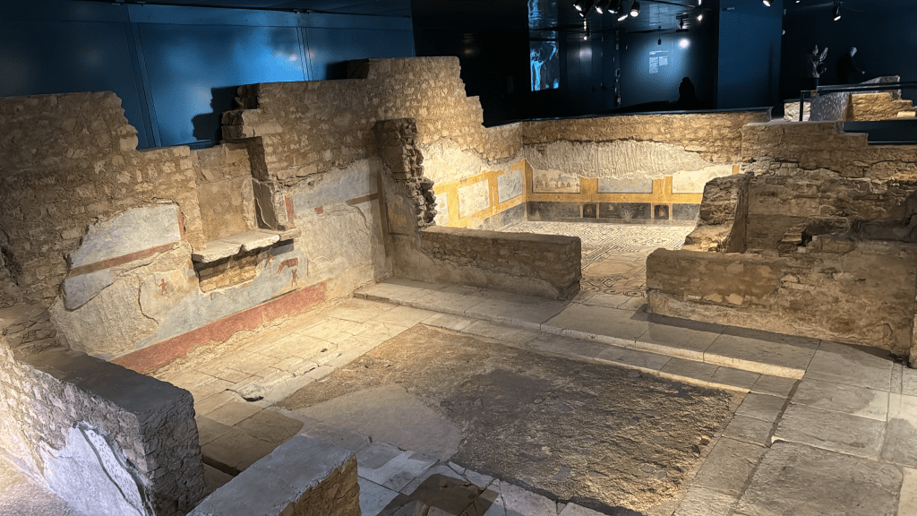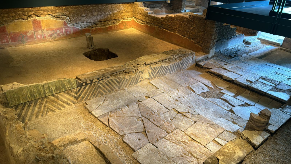 The structures are visible from a walkway suspended above the flooring of the domus and the road surface, which allows you to ‘enter’ all the rooms and reach a detached area, where some of the most significant findings from the houses are presented.