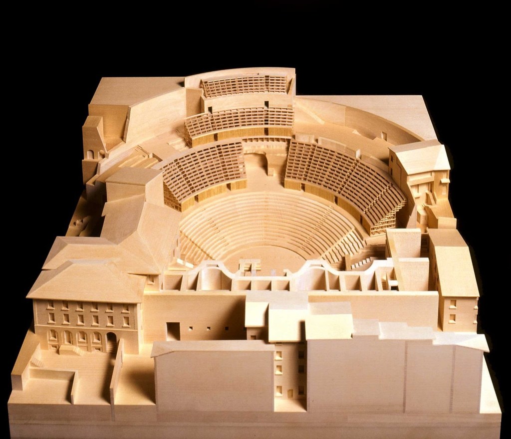 The cavea, the large space where spectators would sit, set on the Cidneo Hill slope, welcomes the visitors evoking the atmosphere of ancient representations. The layout of the building dates back to the Augustan age (end of the first century BC – first century AD), and was subject to enlargements and improvements over the centuries (it arrived to a capacity of 15.000 spectators), until the architectural decoration of the scene was renovated between the second and third centuries AD.