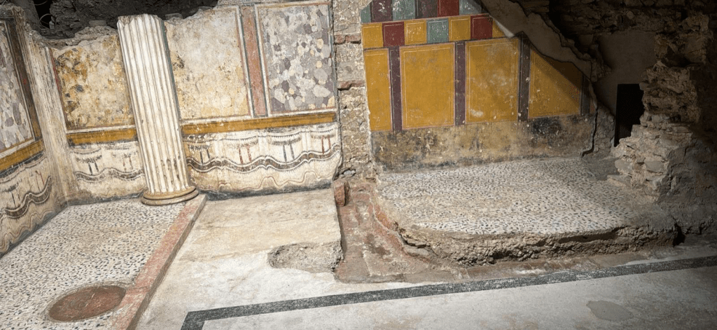 An area that in ancient times had been buried by the slow landslide of the hill behind. That land, then cultivated by the nuns, covered the homes of noble and wealthy families, as can be seen from the richness of the decorations and the value of the architecture.