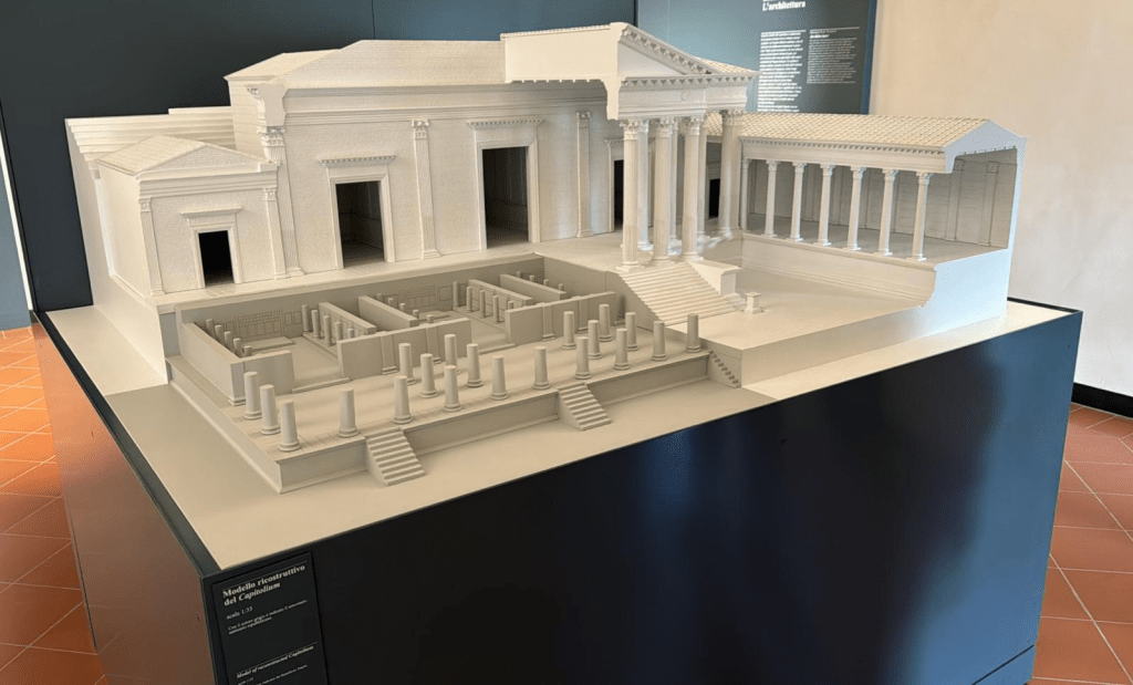 Under Augustus its inhabitants became Roman citizens and in 73 AD Emperor Vespasian built its magnificent temple, near the Roman Forum: the Capitolium, dedicated to Jupiter, Juno, and Minerva, the three main divinities of the Latin pantheon that were venerated in Rome at the namesake temple on the Capitoline hill. They were the guardians of the eternity of Rome and of its dominion over the world.