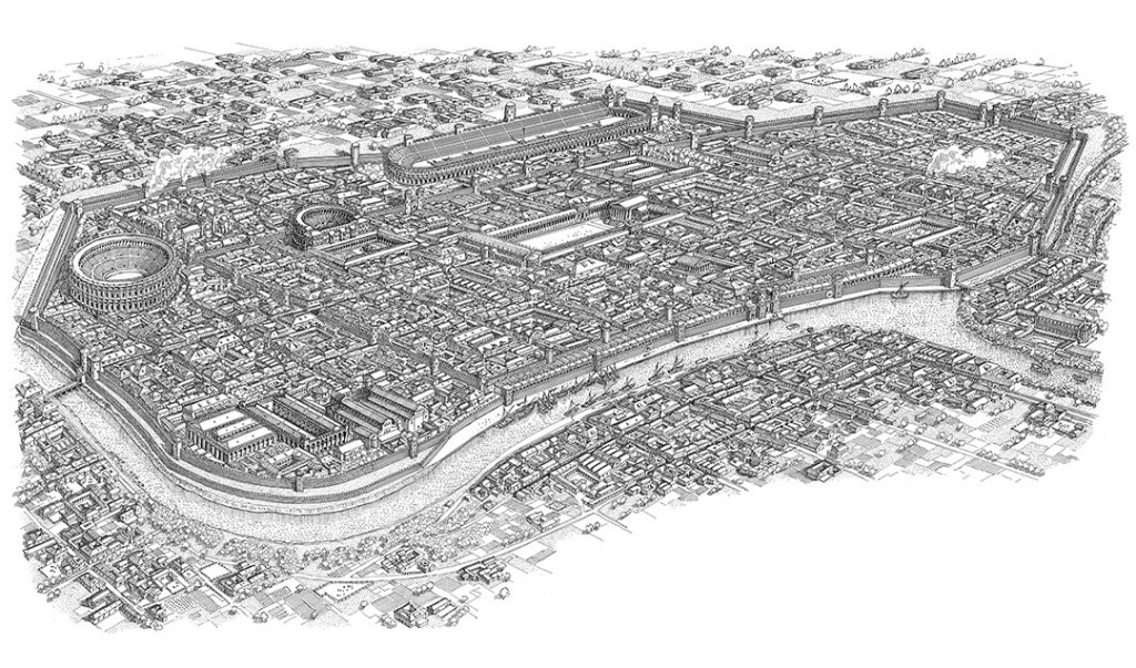 From the lower level, ramps would connect the quays to the city roads, which were also served by wide inclined planes allowing access to the warehouses.