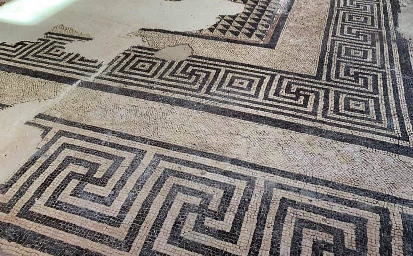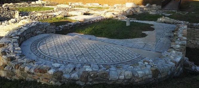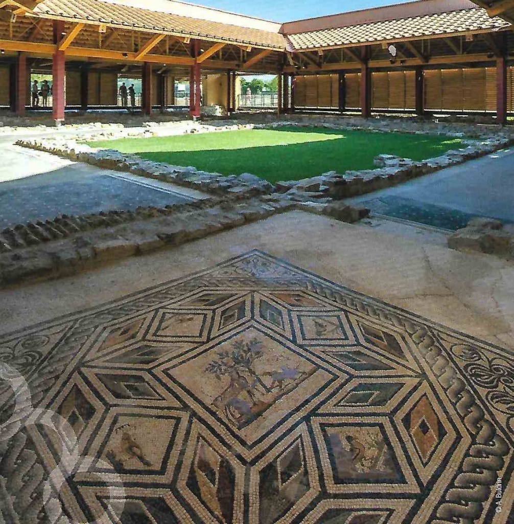 The remains of another dwelling can be seen to the west of the residential site. Developed around an internal peristyle, it consists of several halls and service aisles. The geometrical pattern of black and white tesserae of the mosaic floor indicate that the main house had been built at the time of Emperor Augustus.