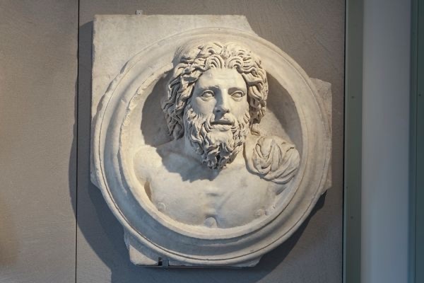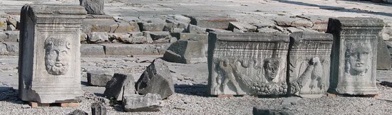 Cycle of Jupiter Ammon and Medusa: a balustrade of parallelepiped blocks used to run along the architrave of the arcades, just above the capitals, interspersed with slabs above the spaces between columns. The slabs were decorated in relief with putti or eagles holding wreaths, while the blocks held the heads of Jupiter Ammon and Medusa. The two motifs had been chosen to recall the width of Roman dominions: from the west (Medusa) to the east (Jupiter Ammon, a deity cherished by Alexander the Great), that is, almost the entire world then known by man.