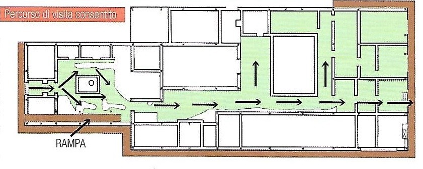 The oldest level refers to a small portion of a house built in the 1st century AD, now visible at the centre of the path at the deepest level of the excavations.
