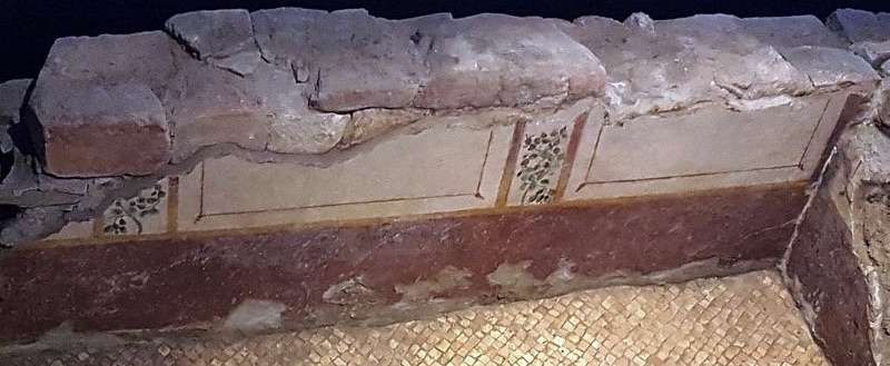 The walls, which still stand for over one metre, are decorated with an elegant fresco pattern.