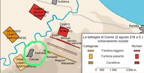 The ground was dry and dusty and Hannibal used to his advantage the Volturnus wind (so called for its blowing from the peaks of Mount Vulture) arranging his troops so that dust would blow into the Romans’ faces and blind them. His cavalry played a decisive role, not just in defeating the Roman horsemen but in encircling the infantry.