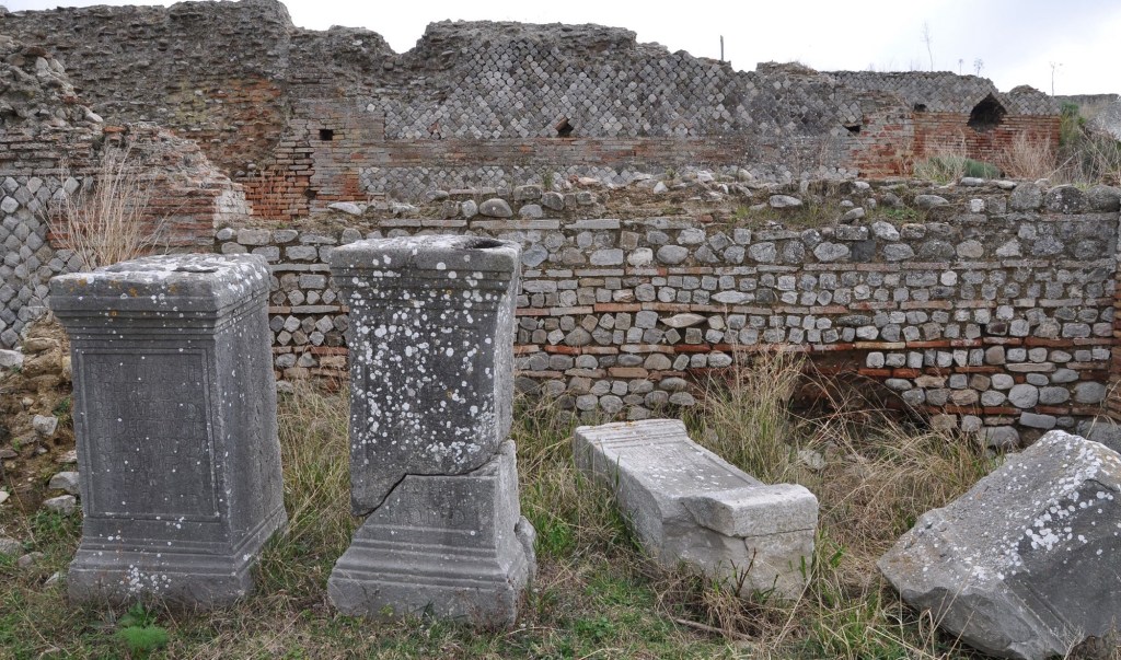A statue base (the fixing pins are still clearly visible on the upper part) has been placed in front of the basilica. It bears a dedication to a generous figure: Minatius from the Galeria tribe (different from that of the majority of the Ordonesi, the Papiria).