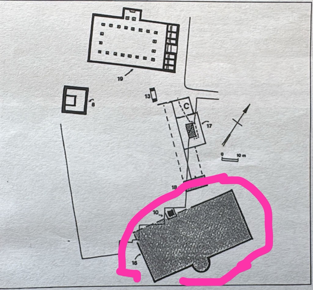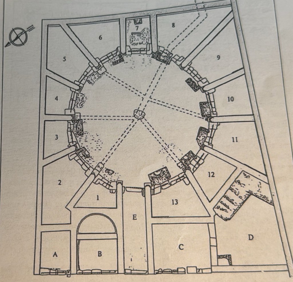 In the elongated room to the left of the entrance is a latrine with a deep cesspool, the filling of which yielded numerous materials. The construction dates to the 2nd-3rd century AD.