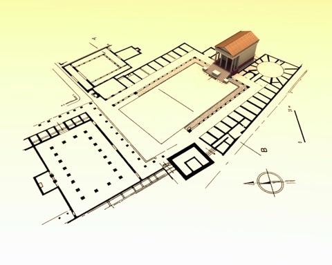 Its imposing façade dominated the southern side of the porticoed square. The building underwent significant modifications in Late Antiquity and maybe it was turned into a Christian church.