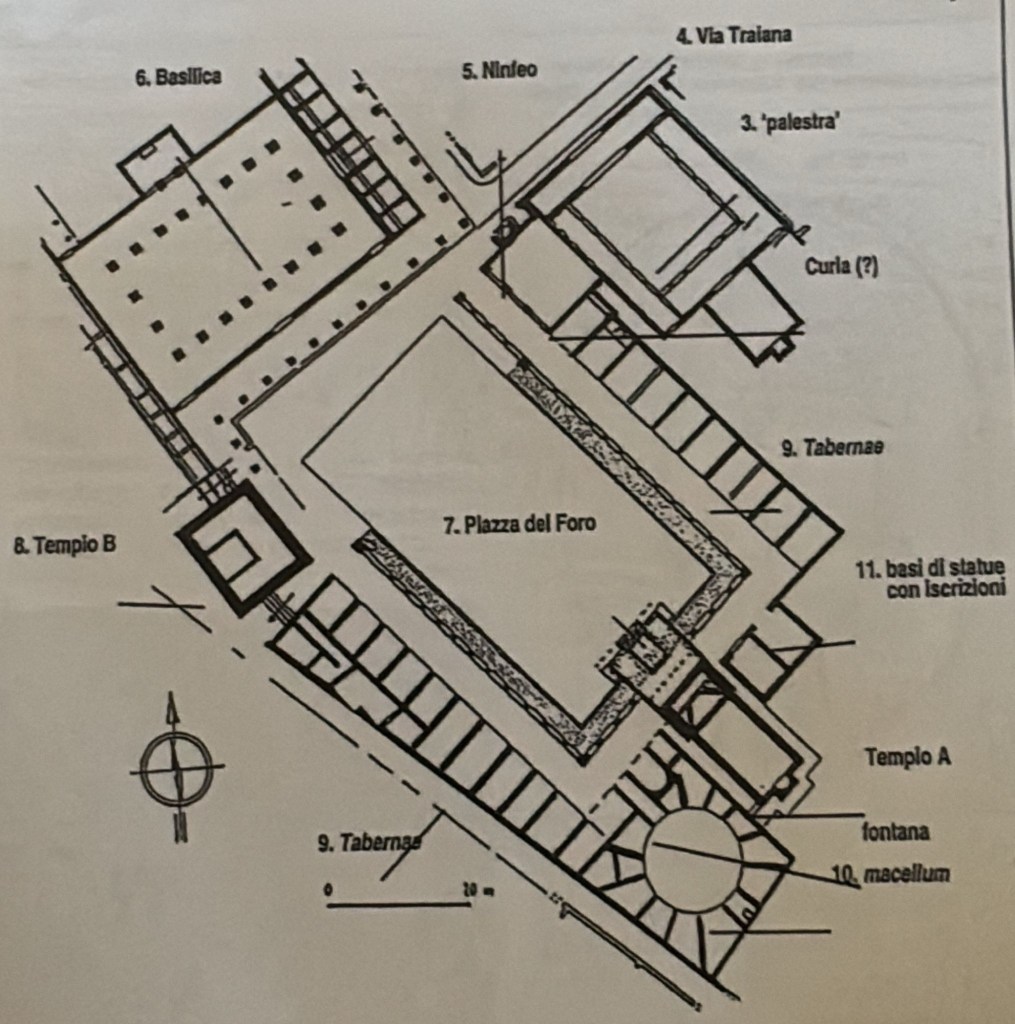 THE FORUM – The Forum was the heart of the Roman city, surrounded by public buildings such as the basilica, the curia, and temples. The square was surrounded on three sides by shops (Tabernae)while on the southern side was a covered market.