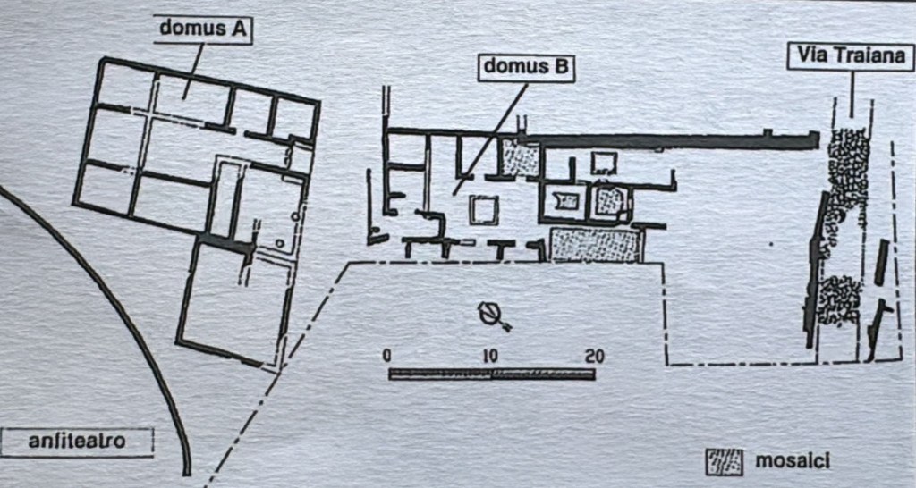 THE TWO DOMUS – Two private residences (domus) located near the amphitheatre and other public buildings, not far from the main city road which in the Imperial era would form the urban layout of the Via Traiana.