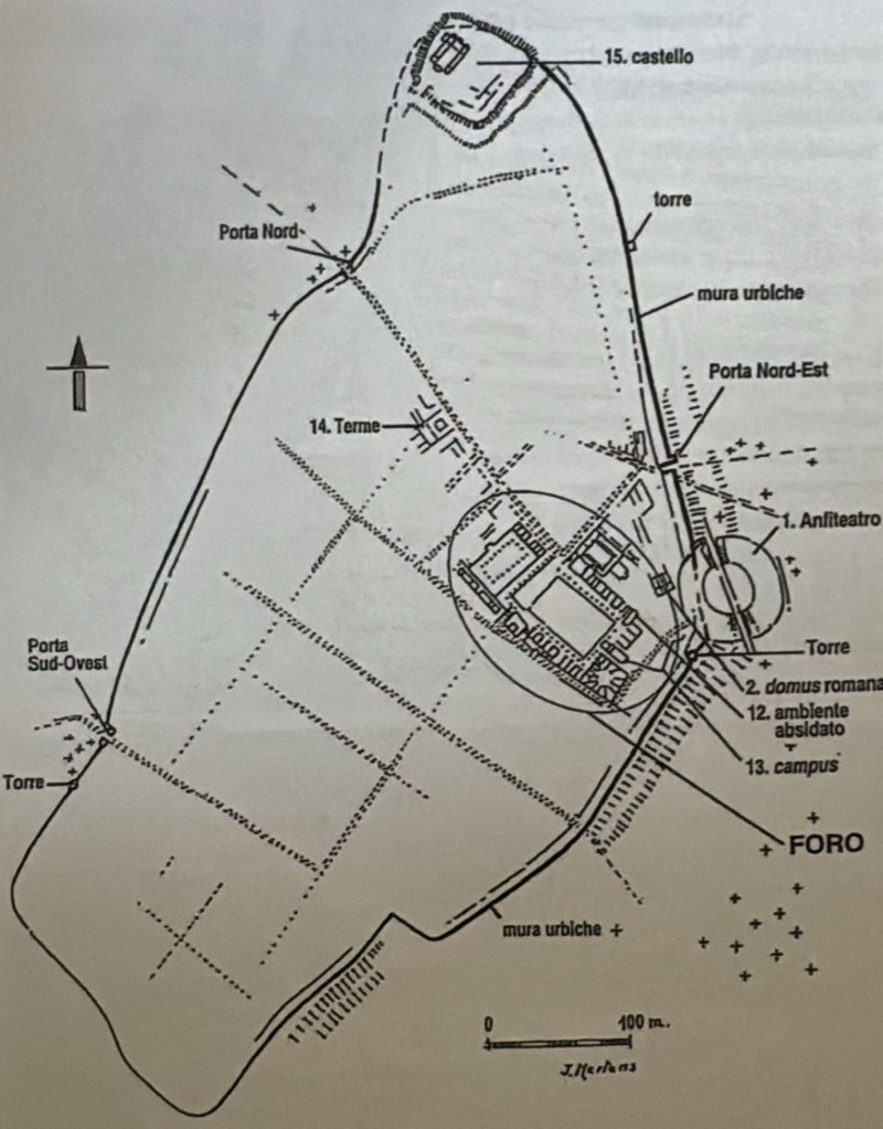 Its remains from the Daunian, Roman, and medieval periods were uncovered following extensive excavation campaigns conducted by a Belgian group of archaeologists from 1962 to 2000. It was belgian archaeologist Joseph Mertens who in 1962 discovered the site and donated it its third life: excavations have revealed remnants of the city walls, two temples, a basilica, the forum, a basilica.